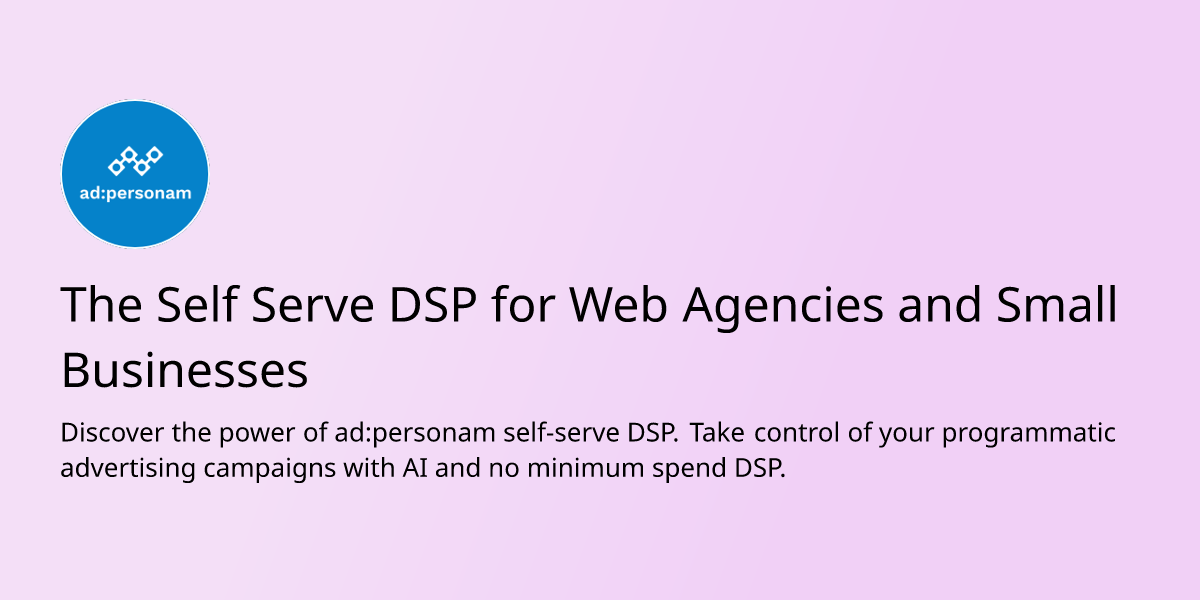 ad:personam is a self-serve Demand Side Platform (DSP) designed for web agencies and small businesses, empowering them to take control of their programmatic advertising campaigns with AI and no minimum spend requirements. This platform is perfect for businesses of any size, providing an intuitive interface for creating, managing, and optimizing programmatic ad campaigns. With ad:personam, users can effortlessly manage campaigns, launch quickly, and access premium inventory.